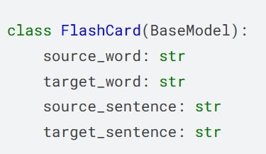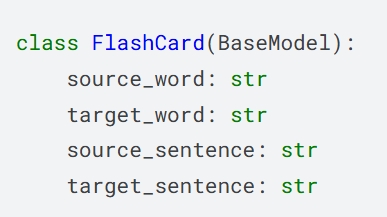 Defining the structure of the flash card would be the first step. This structured output allows the model to generate consistent output every time a request for Flashcard is made.